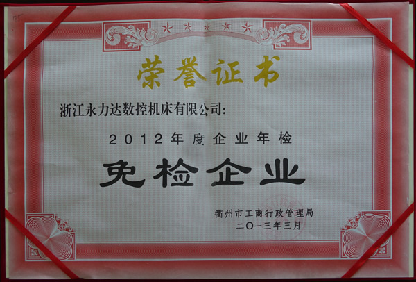 2012年度企業(yè)年檢免檢企業(yè)